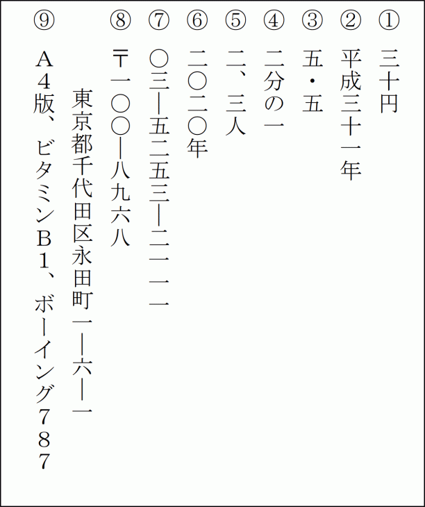 First of all, the way of writing numbers is different in vertical writing and horizontal writing.