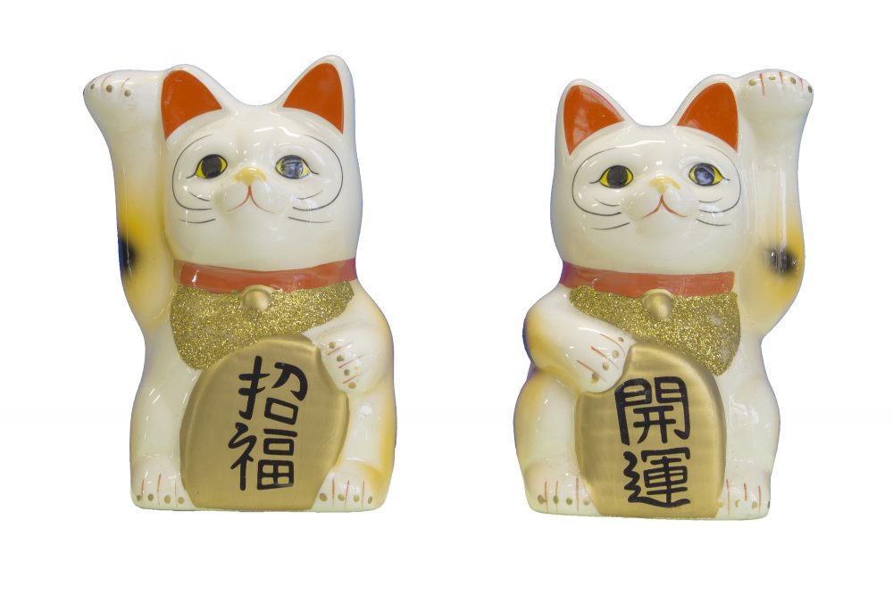By the way, there are different meanings for which hand they are raising. If the cat is raising its right hand, it’s inviting money. If the cat is raising its left hand, it’s inviting people, who are often customers or guests. Raising both hands might be considered as “throw hands up,” therefore, Manekineko usually raises only one hand